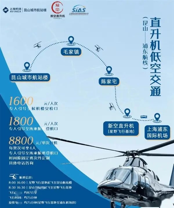 “整個過程既方便又快捷,飛行時間約25分鐘。原本走地面道路到浦東機場需要2小時左右,現(xiàn)在乘坐直升機前往浦東機場,總的時間可縮短至1小時以內(nèi),為兩地間的商務出行、旅游觀光等提供了便利。”昆山航站樓相關負責人說,該航線的開通,解決了傳統(tǒng)地面交通耗時長、易受交通狀況影響的痛點,為出行人員提供了更為高效、準時、便捷的新選擇。