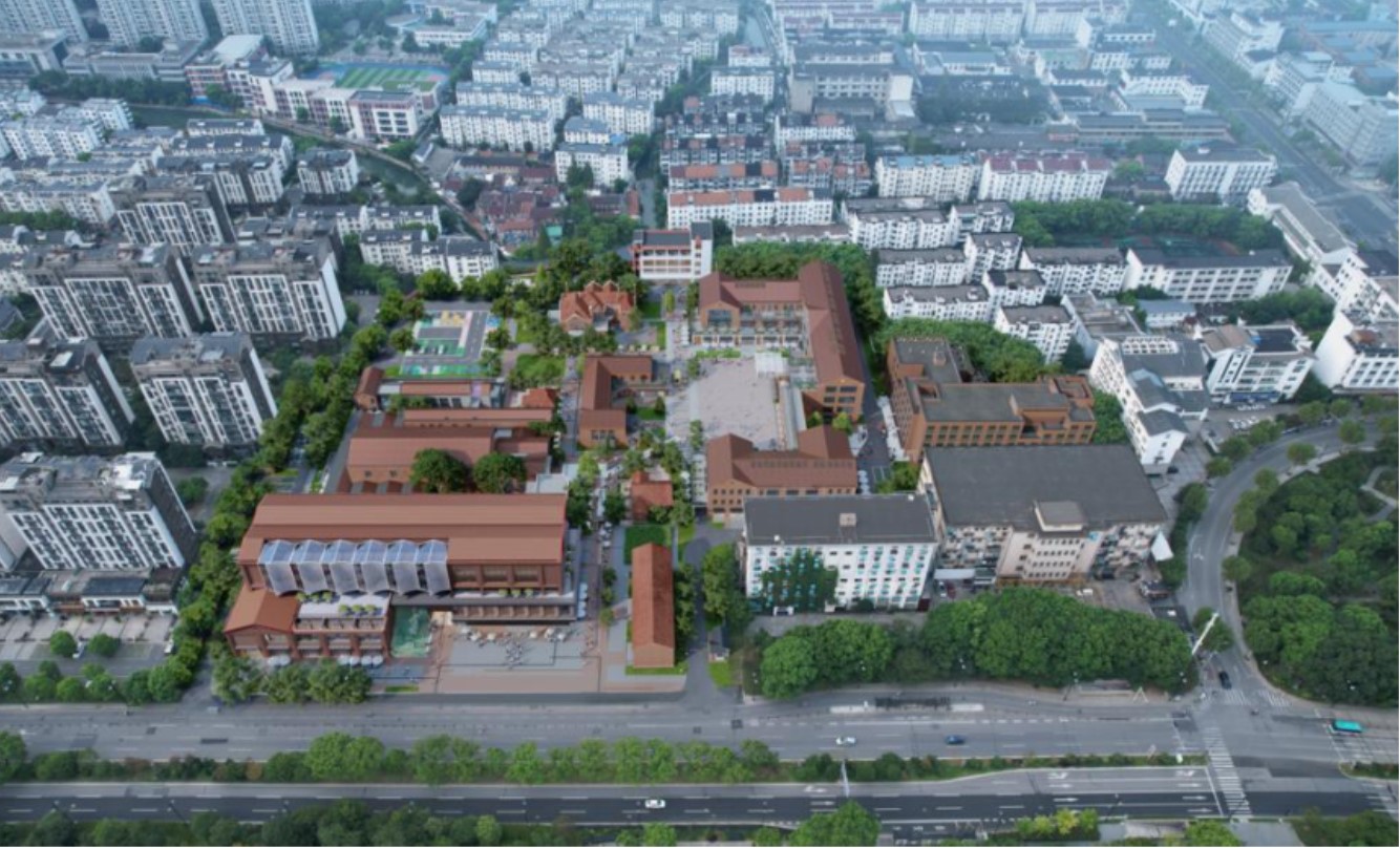 作為中國近代絲綢工業(yè)發(fā)展的活態(tài)見證,蘇州第一絲廠改造項(xiàng)目規(guī)劃保留5棟歷史建筑主體,運(yùn)用拆改舊磚進(jìn)行二次創(chuàng)作,圍繞28棵古樹打造文化廣場(chǎng),通過紅磚基底與水洗石材料的組合,織補(bǔ)工業(yè)文脈的同時(shí),植入全新功能空間。改造后絲廠園區(qū)將形成“一軸多核”空間布局,構(gòu)建文化展示、潮流商業(yè)、藝術(shù)演藝、產(chǎn)業(yè)創(chuàng)新等六大功能板塊。