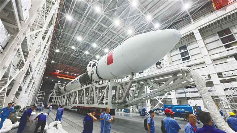 2025年9月30日,發(fā)射場二期項目四號發(fā)射工位導(dǎo)流槽深基坑竣工,古松測控站站房封頂;10月16日,長征八號甲運載火箭成功發(fā)射12組衛(wèi)星,至此,海南商業(yè)航天發(fā)射場實現(xiàn)“六發(fā)六捷”;可重復(fù)使用火箭海上回收系統(tǒng)建設(shè)迎來關(guān)鍵節(jié)點,指揮測控船、兩型回收船相繼開工建造……從荒蕪之地到商業(yè)航天“母港”,發(fā)射場以超常規(guī)之舉,實現(xiàn)一個又一個令人矚目的成就。11月4日上午,發(fā)射場技術(shù)區(qū)內(nèi),長征十二號遙三運載火箭已完成發(fā)射前組裝,靜靜地躺在二號發(fā)射工位的三平火箭廠房里,等待即將開啟的太空征途。