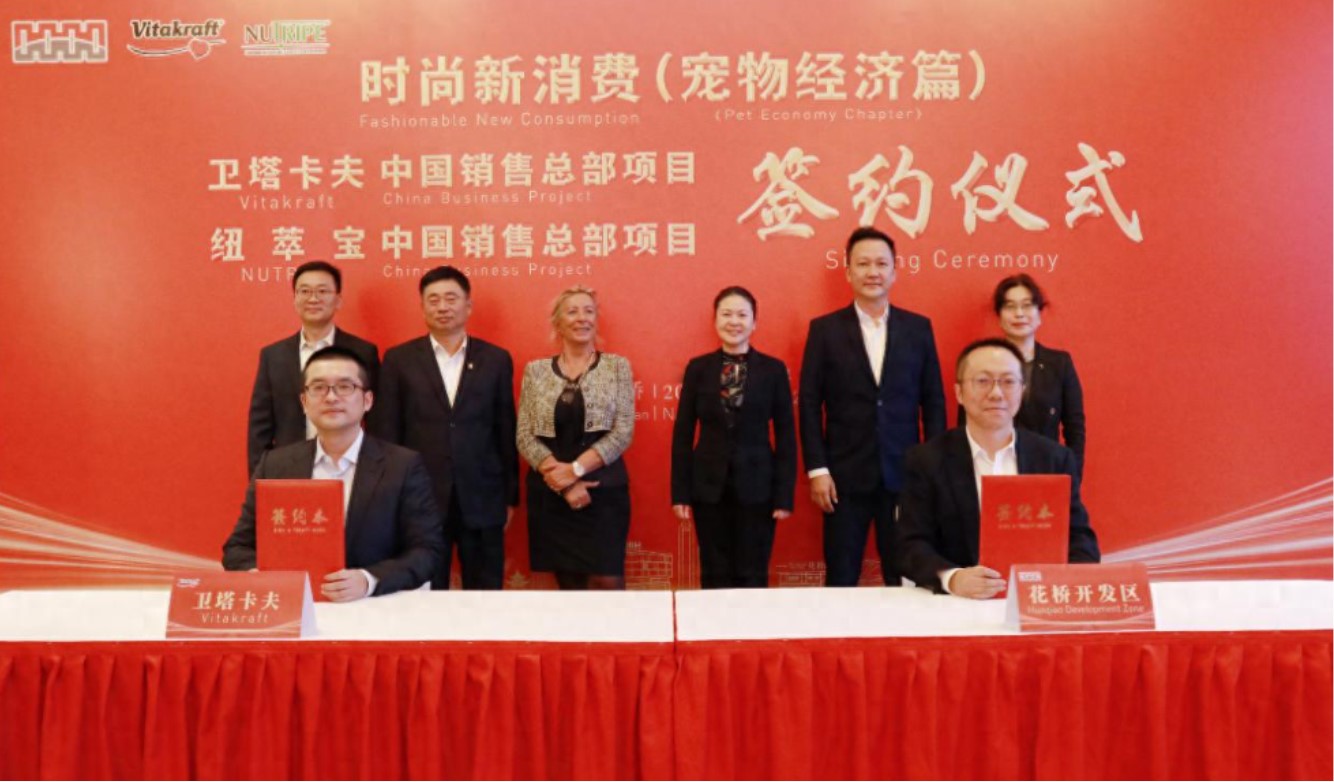 2025年11月4日,衛(wèi)塔卡夫中國銷售總部項(xiàng)目和紐萃寶中國銷售總部項(xiàng)目簽約儀式在昆山花橋經(jīng)濟(jì)開發(fā)區(qū)舉行。兩大國際知名寵物品牌的落戶,不僅是花橋深耕“寵物經(jīng)濟(jì)”賽道的重要里程碑,更是其打造具有國際影響力的時(shí)尚消費(fèi)商務(wù)城的又一豐碩成果,為這座“江蘇東大門”高質(zhì)量發(fā)展畫卷添上新的一筆。